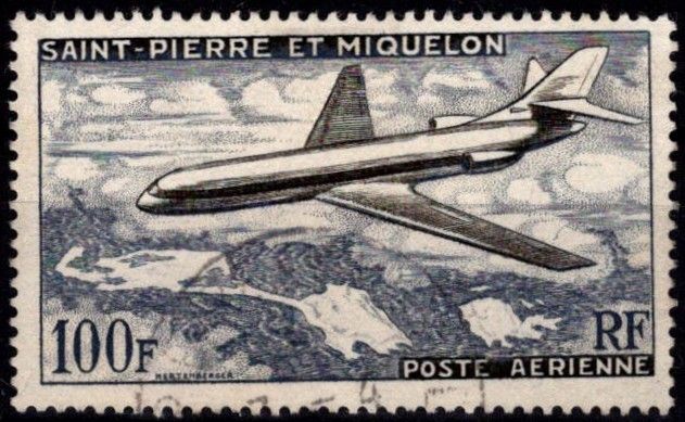 Accueil > Timbres > Andorre, Monaco, DOM-TOM > Saint Pierre et Miquelon > Poste Aérienne > 1957 - Saint Pierre et Miquelon Timbre Poste Aérienne n° 25 - Avion