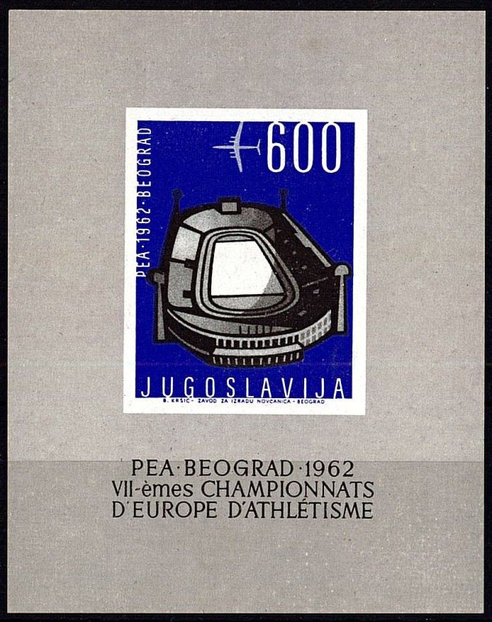 1962 - Yougoslavie Bloc n° 9 - Athlétisme - Championnats d'Europe d'athlétisme à Belgrade