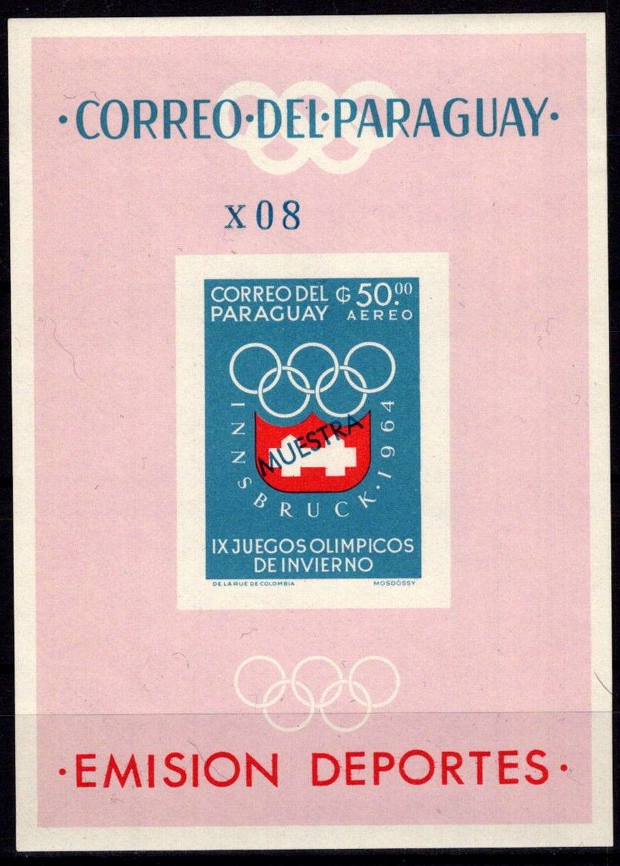 1963 - Paraguay Bloc Non Dentelé n° 29 muestra - Jeux Olympique d'hiver - 1964 Innsbruck