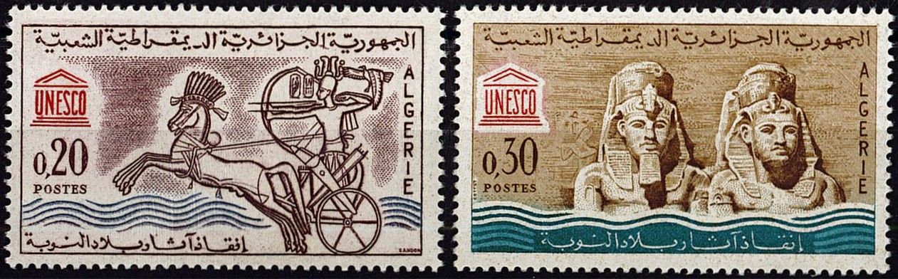 1964 - Algérie Timbres n° 387/388 - Archéologie - Sauvegarde des monuments de Nubie
