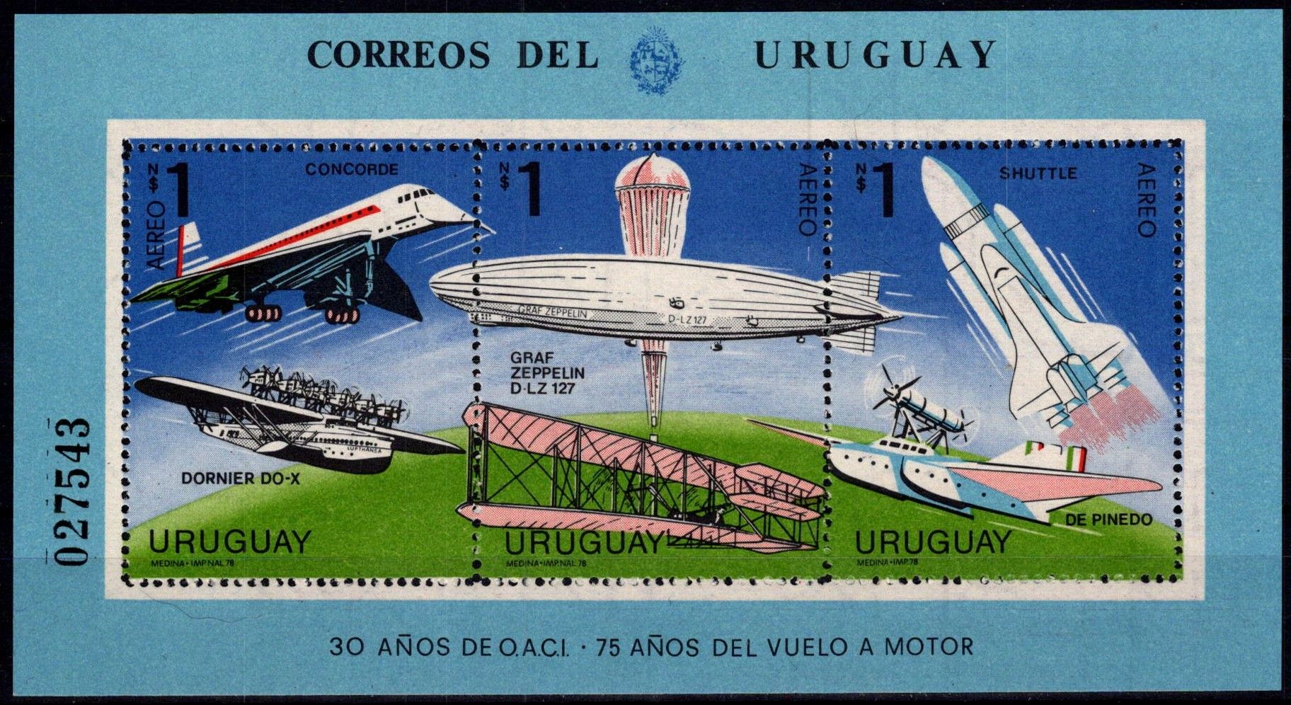 1978 - Uruguay Bloc n° m38 - 30e anniv. de l'aviation civile internationale (OACI) et 75e anniv. du 1er moteur aérien