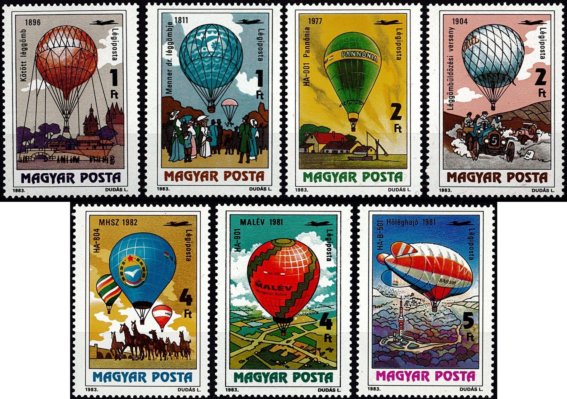 1983 - Hongrie Timbres Poste Aérienne n° 450/456 - Ballons - Bicentenaire de la première ascension de l'homme dans l'espace