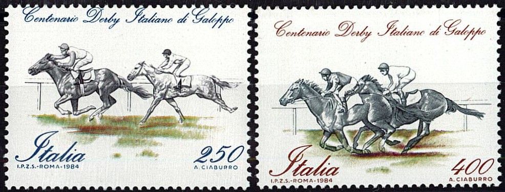1984 - Italie Timbres n° 1621/1622 - Chevaux - Centenaire du derby italien de galop