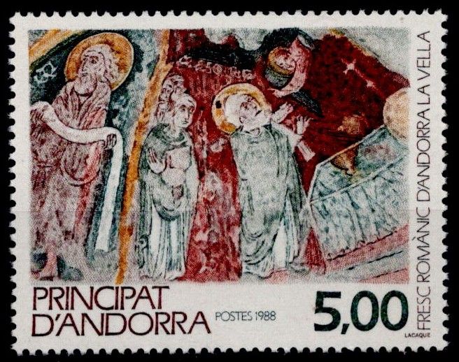 Accueil > Timbres > Andorre, Monaco, DOM-TOM > Andorre France > Poste (Timbres) > 1988 - Andorre Français Timbre n° 375 - Fresque romane de l'église d'Andorre