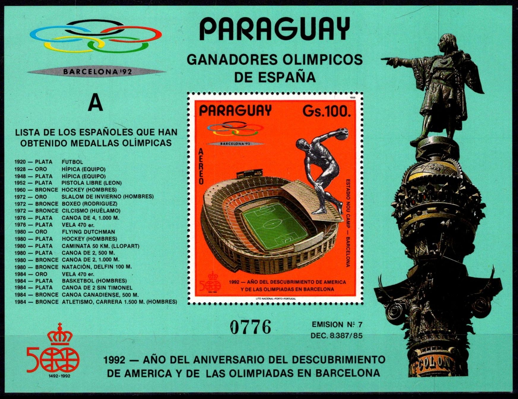 1989 - Paraguay Bloc n° 399 - Jeux Olympiques d'été - 1992 Barcelone