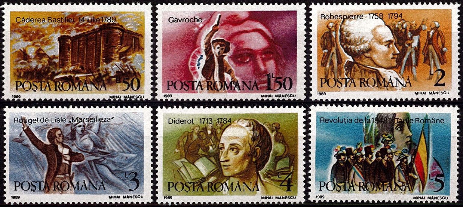1989 - Roumanie Timbres n° 3860/3865 - Bicentenaire de la Révolution française