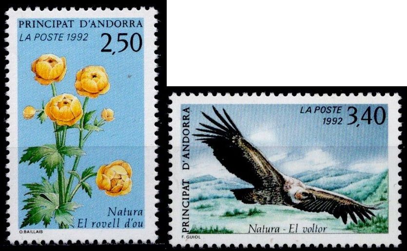 1992 - Andorre Français Timbres n° 420/421 - Protection de la nature