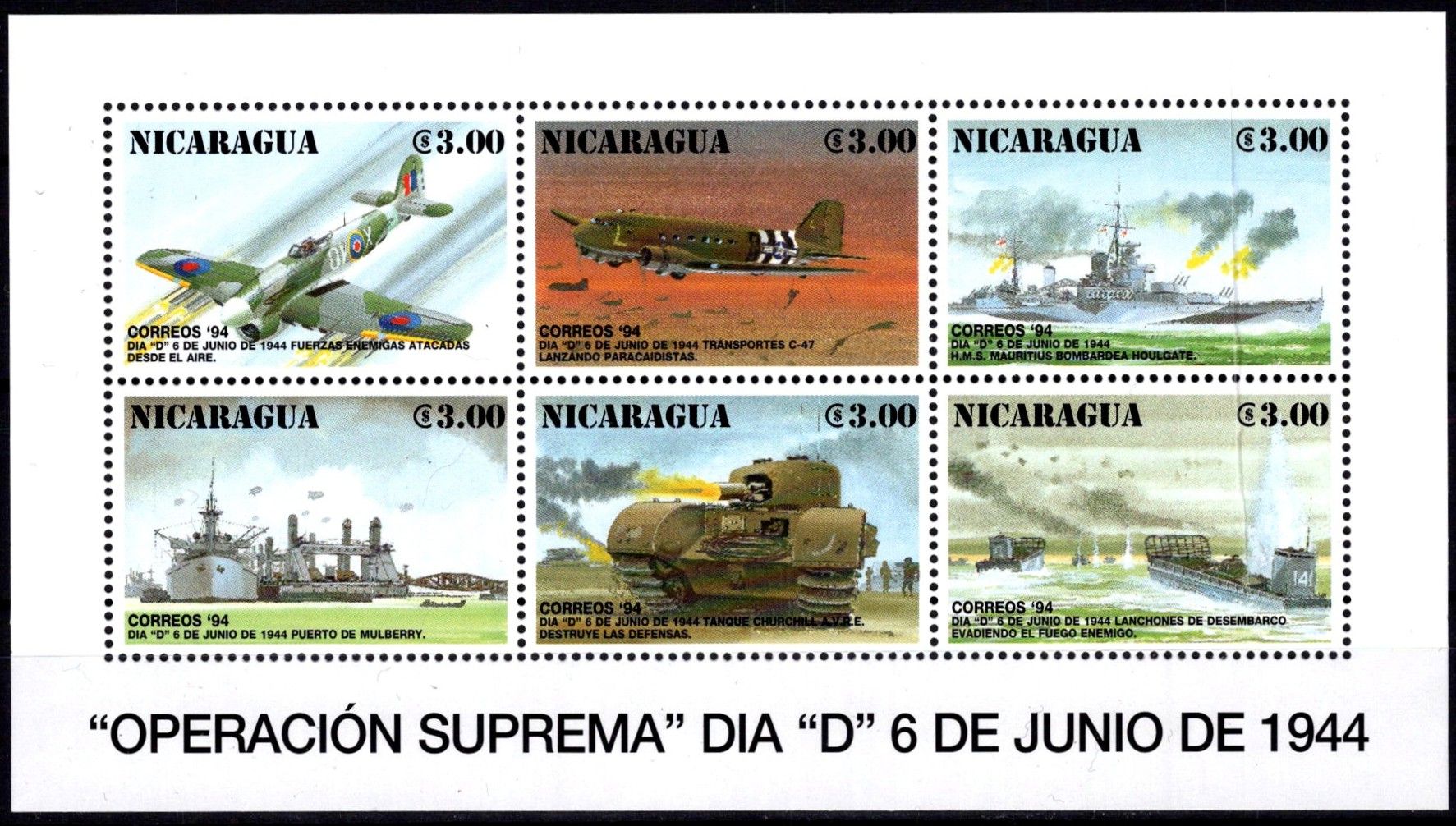 1994 - Nicaragua Feuillet n° 1843/1848 - 50e anniversaire du débarquement des troupes alliées en Normandie