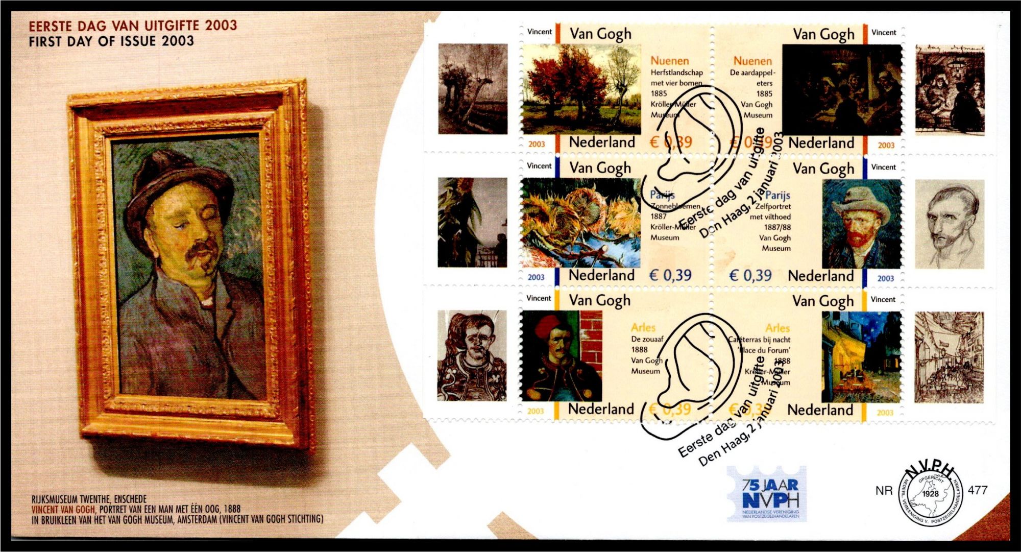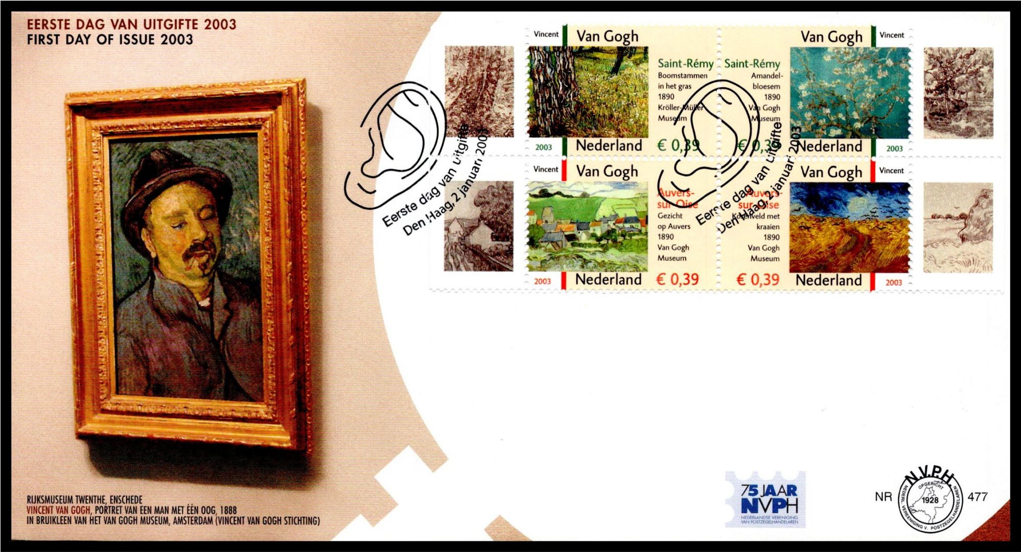 2003 - Pays-Bas 2 FDC n° 1997/2006 - 150è anniversaire de la naissance du peintre Vincent Van Gogh