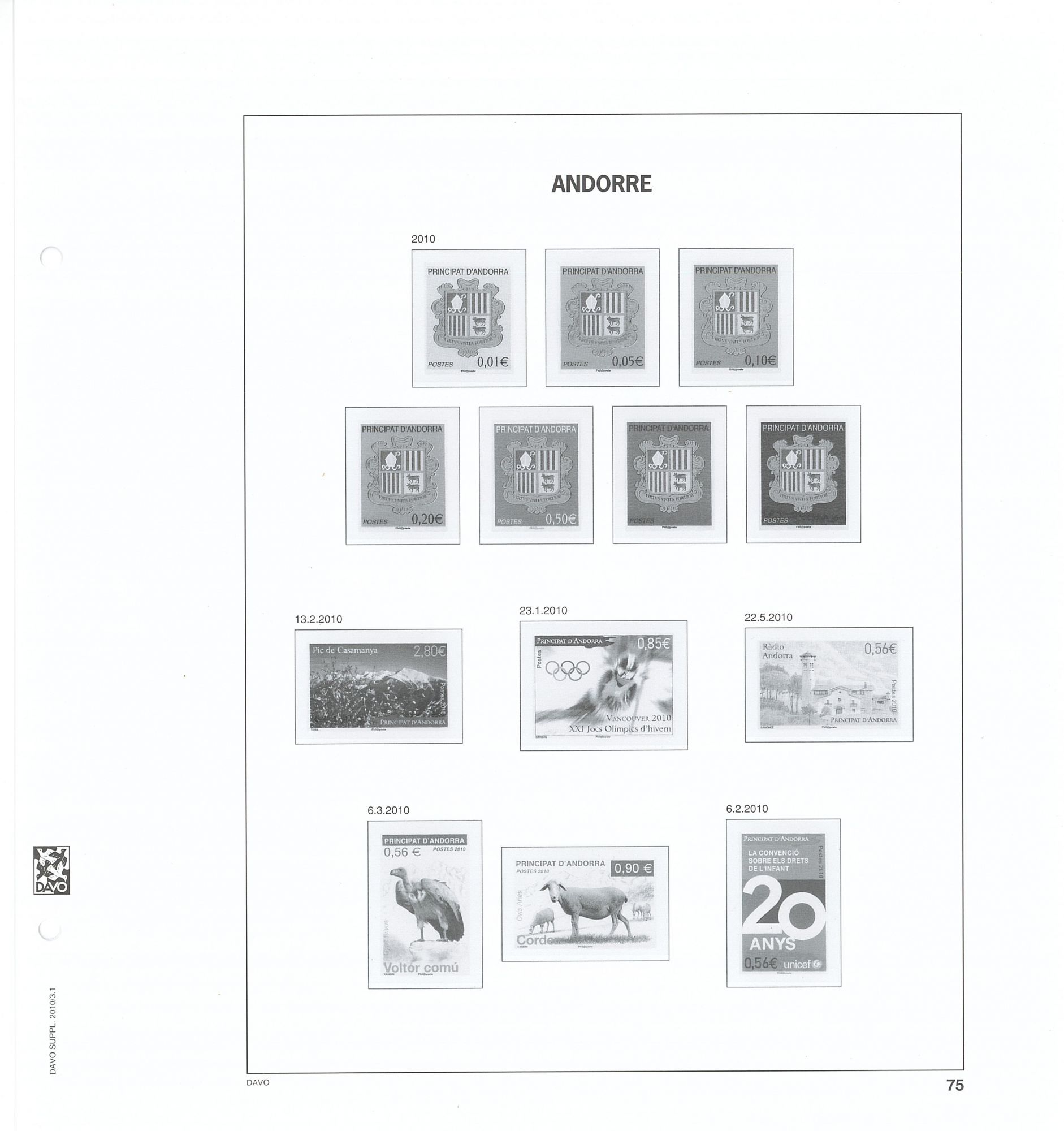 La mise à jour Luxe 2010 de votre album de timbres Andorre France 2010 comprend: