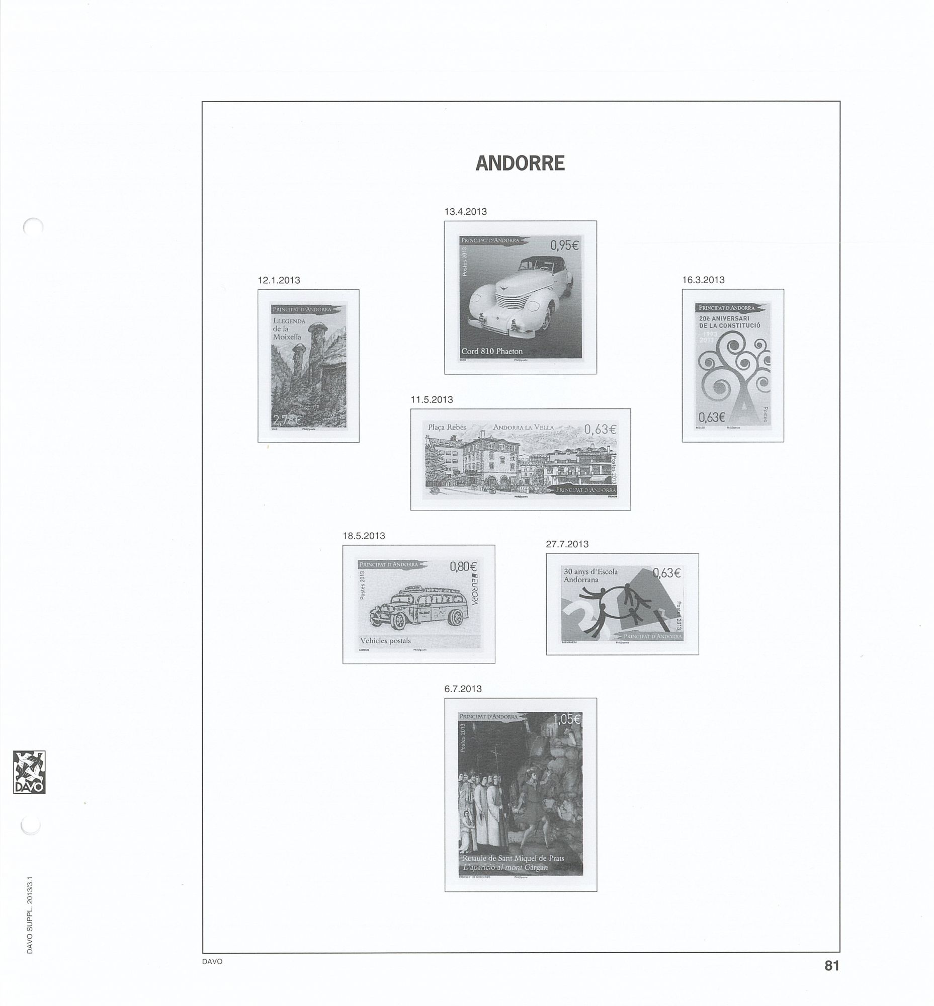 La mise à jour Luxe 2013 de votre album de timbres Andorre France comprend: