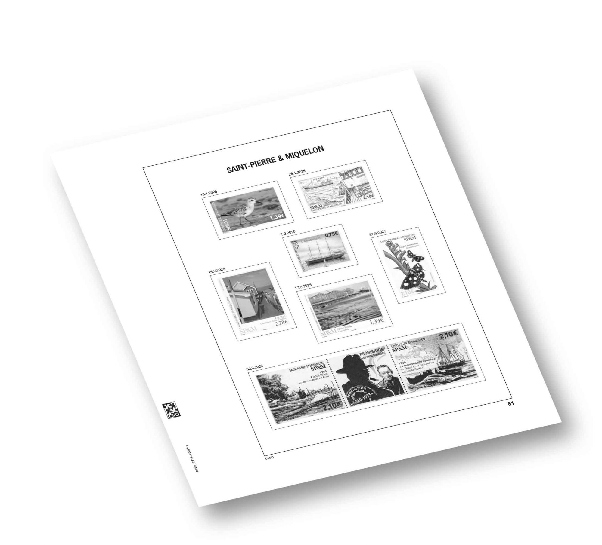 La mise à jour Luxe Saint Pierre et Miquelon 2025 de votre album de timbres comprend:
