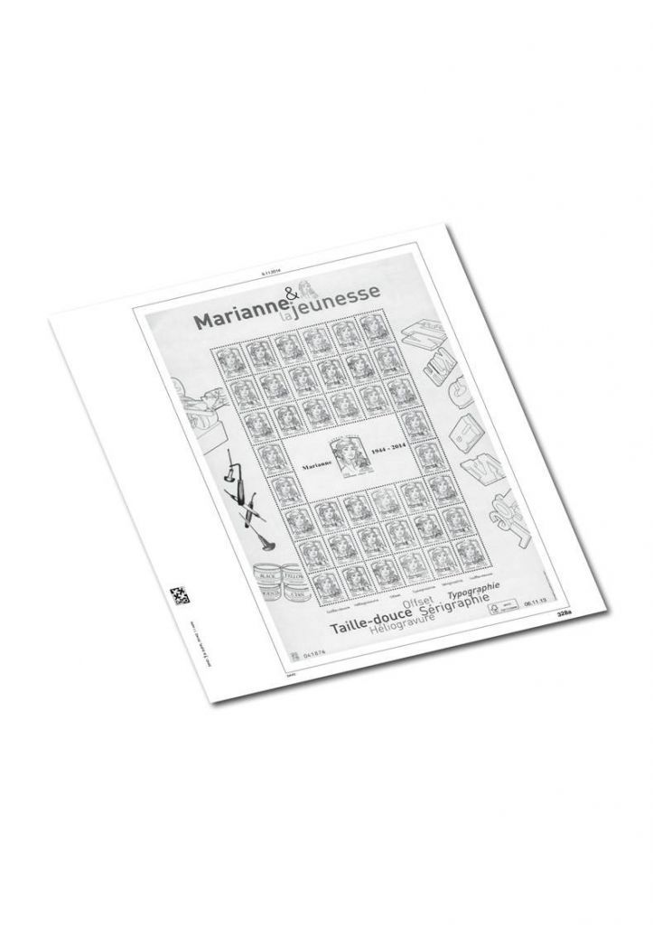 Sur cette feuille, vous retrouverez l'illustration du feuillet Marianne surchargee 1944-2014.